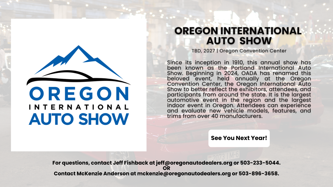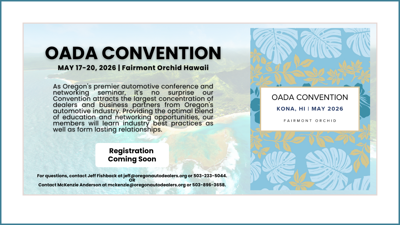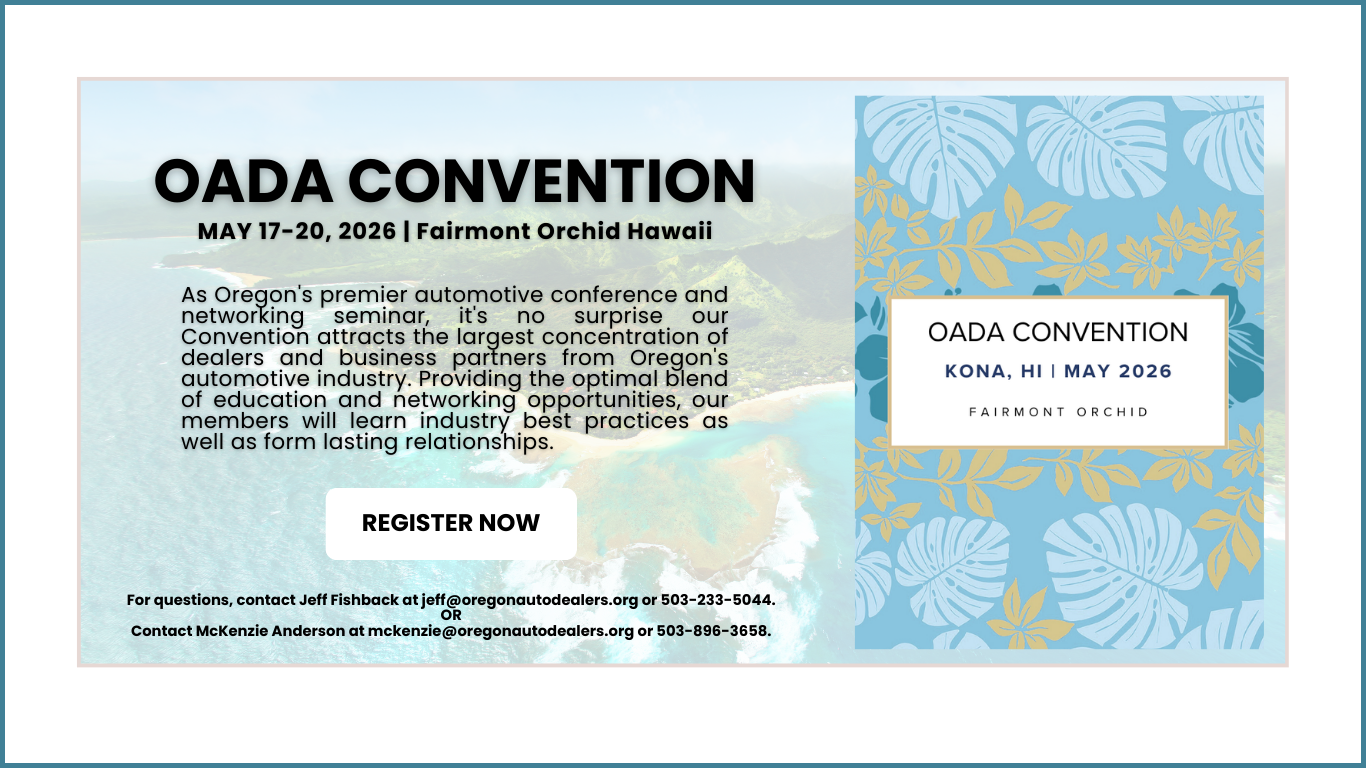 Oregon Auto Dealers Association7357 SW Beveland Street, Suite 200Tigard, OR 97223503.233.5044info@oregonautodealers.org