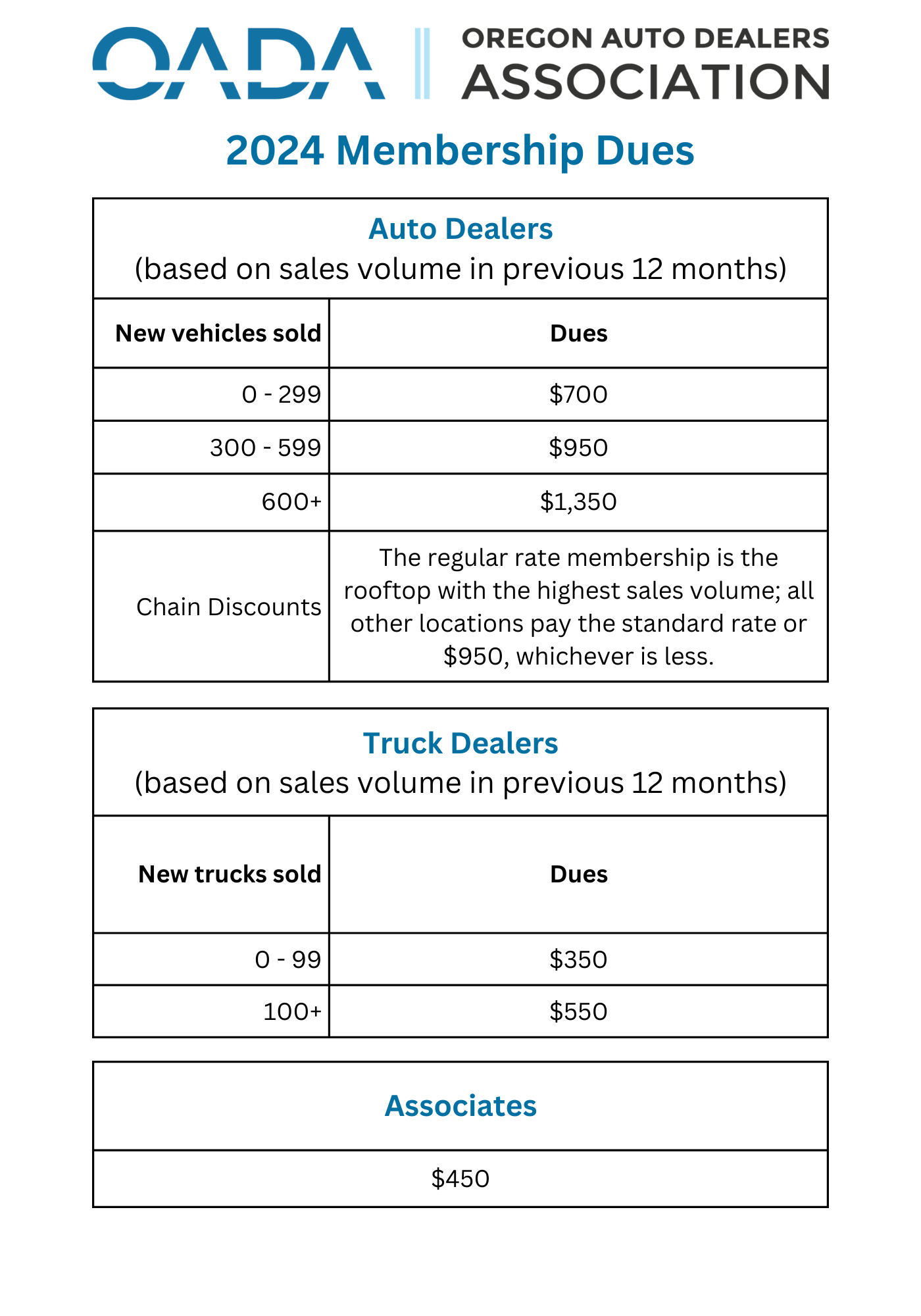 Local dealerships are the economic cornerstone of their communities. When other large companies move in and out of communities, dealers remain- offering well-paying jobs with opportunities for advancement. There are more than 200 dealerships across the state, each averaging 62 employees. By adding in the indirect and induced jobs supported by those dealerships, it represents over 28,000 jobs. These jobs are critical—especially in providing tax revenue, to the bottom line of many local communities. 15% of all state and local tax revenue comes from dealerships This economic engine provides jobs and incomes that in turn create vibrant livable communities around the state. We are proud that our industry helps bring families together, creates lasting memories and serves the communities where we live. If you are an auto dealer in the state of Oregon or a business that works with auto dealers in the state of Oregon, we would love for you to join our community. OADA is the most direct way to network with Oregon dealers, remain on the cutting edge of sales, and stay informed of current news, trends, and events. Click an option below to learn more about member benefits, or click here to join!